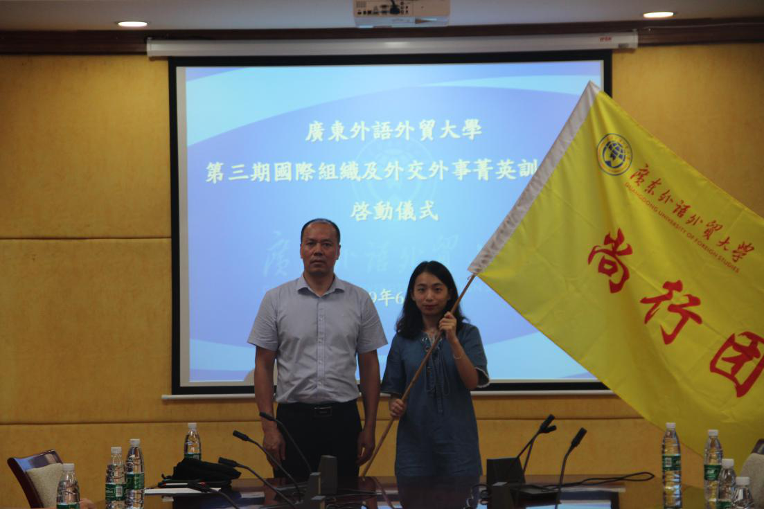 6月28日下午,广东外语外贸大学第三期“国际组织及外交外事菁英训练营”启动仪式在南校区校办公楼第一会议室举行。学生就业指导中心主任康为茂,研究生院院长胡文涛、教务处副处长袁琦,学生就业指导中心副主任娄会东、林宏伟,以及训练营全体成员出席仪式。启动仪式由娄会东主持。