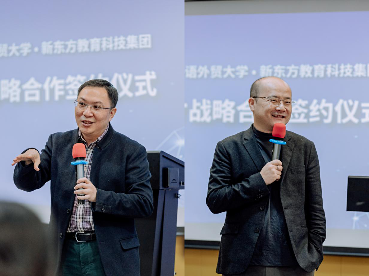 刘海春在致辞中表示,新东方是以英语起家,而广外是语言类的名校,两家单位有很多相似的基因。今天的合作是一个起点,期待双方未来可以有更多的合作模式创新,包括人才定向培养、在校教师技能培训、新东方教师深造等等方面。祝愿未来双方有更紧密的人才培养合作。