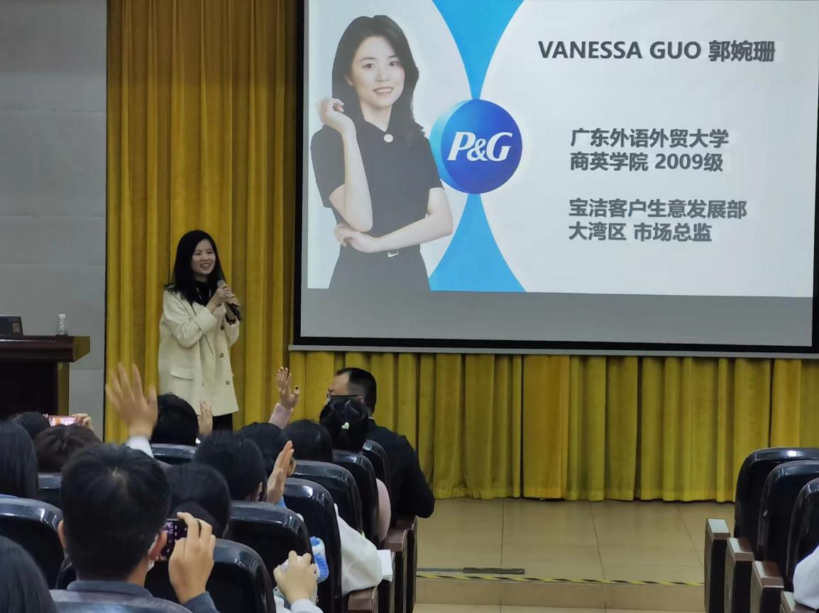 11月25日,广东外语外贸大学职业发展力讲坛第十一讲于北校区第七教学楼水上报告厅举行。来自宝洁中国客户生意发展部大湾区市场总监2013届商英学院校友郭婉珊为我校学子带来关于“如何基于个人潜力提升求职技能”的专题讲座。