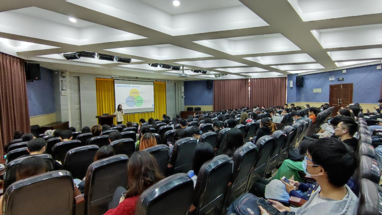 郭婉珊校友围绕“如何挖掘自身潜力”、“求职面试的核心是什么”、“如何在面试中脱颖而出”三个模块展开分享。首先从在大学期间如何发掘自身潜力,再到分析求职面试究竟是什么,最后完成从校园挥洒汗水到职场意气风发的转变,与同学们分享了如何在千军万马中安稳地走过独木桥,顺利拿到心仪的offer。郭婉珊以丰富的个人经验为同学们带来了一场饕餮盛宴,帮助了更多迷茫的大学生挖掘自身的潜力,并强调自学与自强是激发潜力缺一不可的条件。