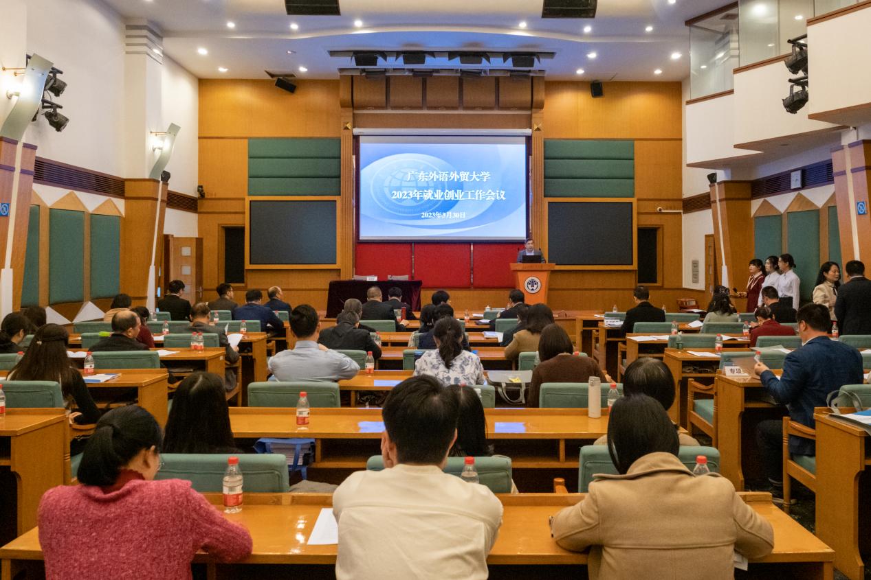 学生就业创业中心主任康为茂介绍了我校2022届毕业生就业情况,分析了当前毕业生的就业形势,并对接下来2023届毕业生的就业工作作了具体安排:一是重点开拓市场化岗位,加大访企拓岗力度,持续加强校企合作,全力拓宽毕业生就业渠道;二是开展各类业务培训和调研,重点帮扶困难群体,简化就业手续办理,全力优化毕业生就业服务;三是加强职业生涯规划教育,举办职业发展实践活动,开展国际组织青年人才培训,全力提升职业规划教育实效;四是加强国家级创新创业教育实践基地建设,做好广东省大学生创新创业教育示范学校动态调整考核评估工作,举办各类创新创业实践活动,全力推进双创教育提质增效。