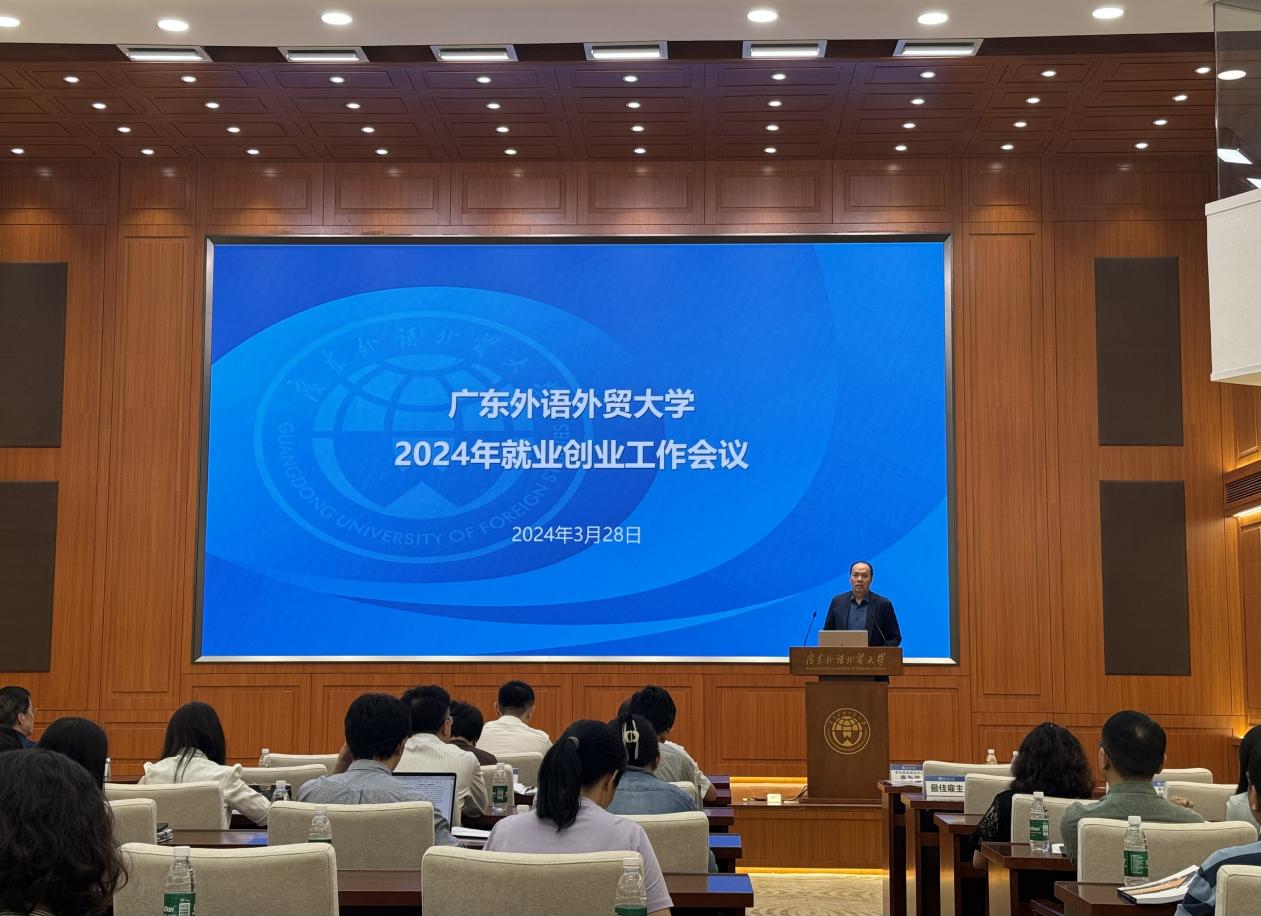 今年的会议首次设置“广东外语外贸大学毕业生最佳雇主(企业)”奖项,并对2023年度就业工作先进集体和先进个人进行了表彰。随后商学院和日语语言文化学院作为先进集体的代表分享了就业创业工作经验。为了更加客观、全面地了解我校毕业生就业质量与人才培养情况,学校委托了第三方机构麦可思数据(北京)有限公司对我校毕业半年的毕业生进行追踪调研。会上,麦可思公司首席科学家、副总裁程星博士围绕就业结构与去向、就业质量与发展、教学质量与课程建设以及学生服务与校友评价四个模块对调研报告进行了解读。