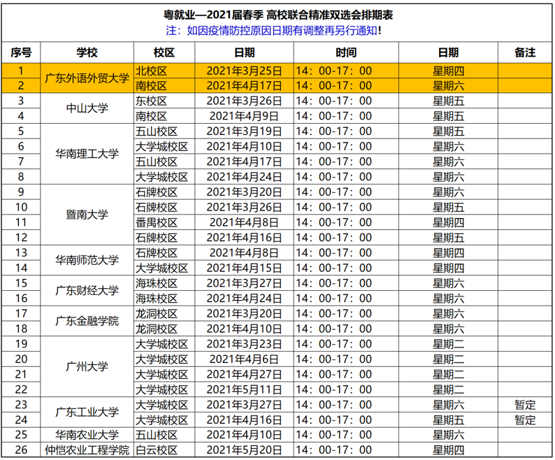 为促进疫情下2021届毕业生充分就业,服务用人单位招聘高校人才,搭建企业与毕业生的沟通桥梁,拟联合广东15所高校,携手1000+优质用人单位,举办“粤就业—2021届春季高校联合精准双选会”招聘活动。