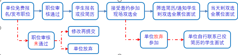 精准双选会是多校联合,用人单位可以选择参加多所学校,学生既可以提前报名和投递简历,也可以直接到双选会现场参加面试,线上/线下结合的双选会招聘活动。