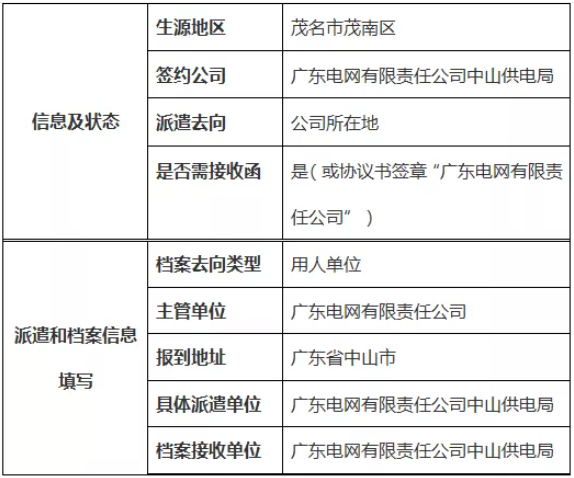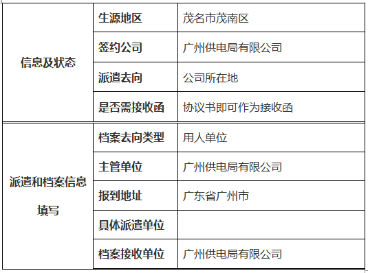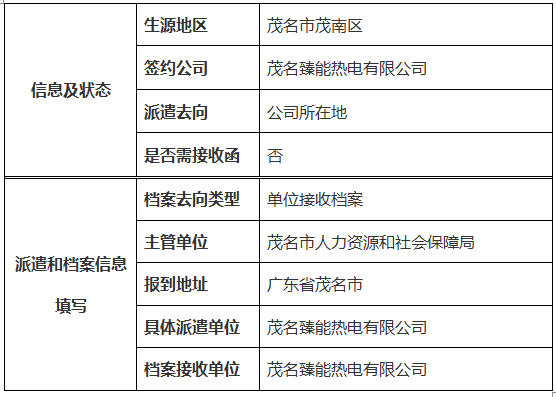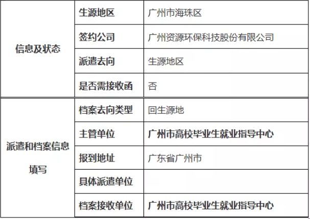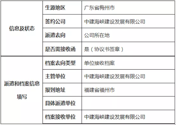 注:签约生源地国有企业、事业单位、国家机关单位明确报到证需要注明“备注”单位名称,档案去向类型选择“单位接收档案”,再填写具体派遣信息和档案接收信息。