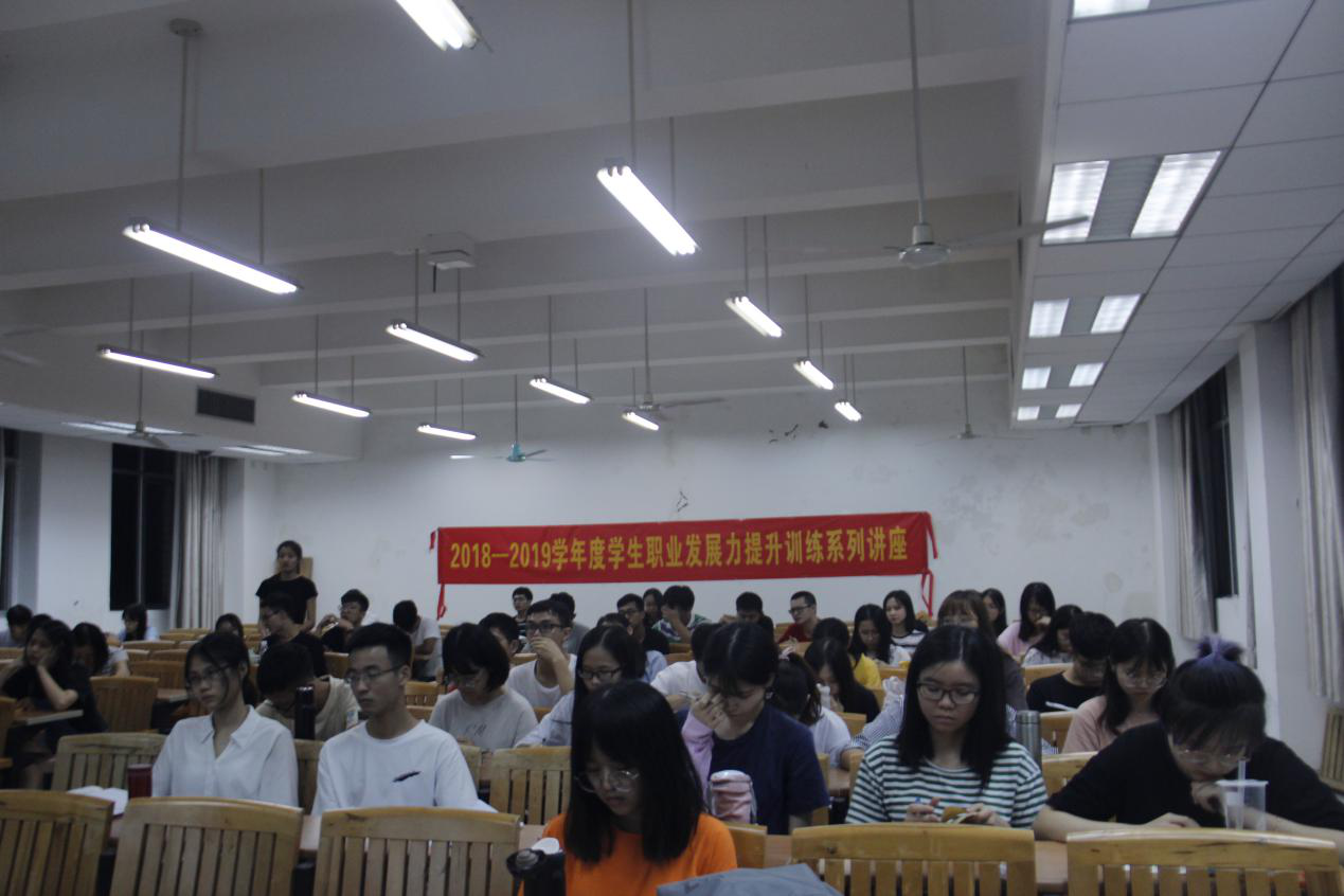 2018年9月13日晚,由我校就业指导中心主办的“2018-2019学年度职业发展力提升训练系列讲座”第一讲分别在南校区教学楼E座503室、北校区第二教学楼219室顺利举行。学生就业指导中心副主任肖锋老师、综合管理与市场信息科科长罗星老师分别主持了南校区和北校区的首场讲座,并为同学们介绍了在个性化求职、专业深造方面可以使用的学生就业指导中心的信息与资源。