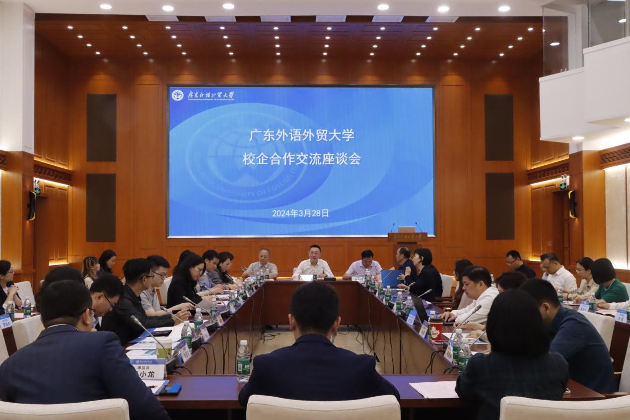又讯 3月28日上午,我校在白云山校区国际会议厅举办广东外语外贸大学校企合作交流座谈会。校党委副书记唐锐出席座谈会。此次座谈会邀请了工商银行、普华永道、比亚迪、美的集团等25家企业代表,各企业代表围绕企业用人需求、我校毕业生在企业表现情况、如何深化校企合作,以及对学校人才培养和学科专业建设的意见建议等展开交流座谈。