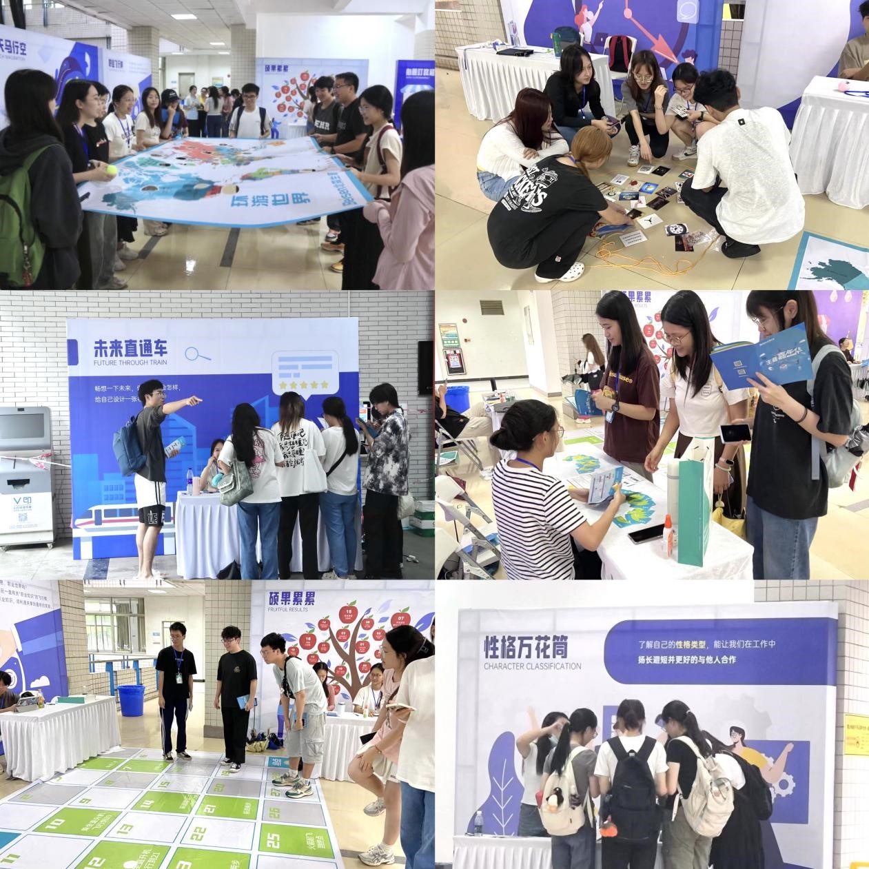 生涯体验周活动是以职业生涯规划为主题的国内新型户外游戏式体验活动,作为职业生涯规划教育的“第二课堂”,是课程教学的有益补充和实践延展。本次活动设置了“热身活动站”“职业探索站”“挖掘自我站”“头脑风暴站”和“未来规划站”五大区域,共有十三个趣味游戏,覆盖职业兴趣、性格、技能、价值观、职业探索等多个板块。活动期间,还设置了“职业生涯规划一对一辅导”的职业咨询台,为学生提供个性化咨询服务。同学们纷纷表示此次活动不仅可以展示自己学习成果、加强团队协作精神,更是一个让自己深入思考未来发展方向的重要契机。