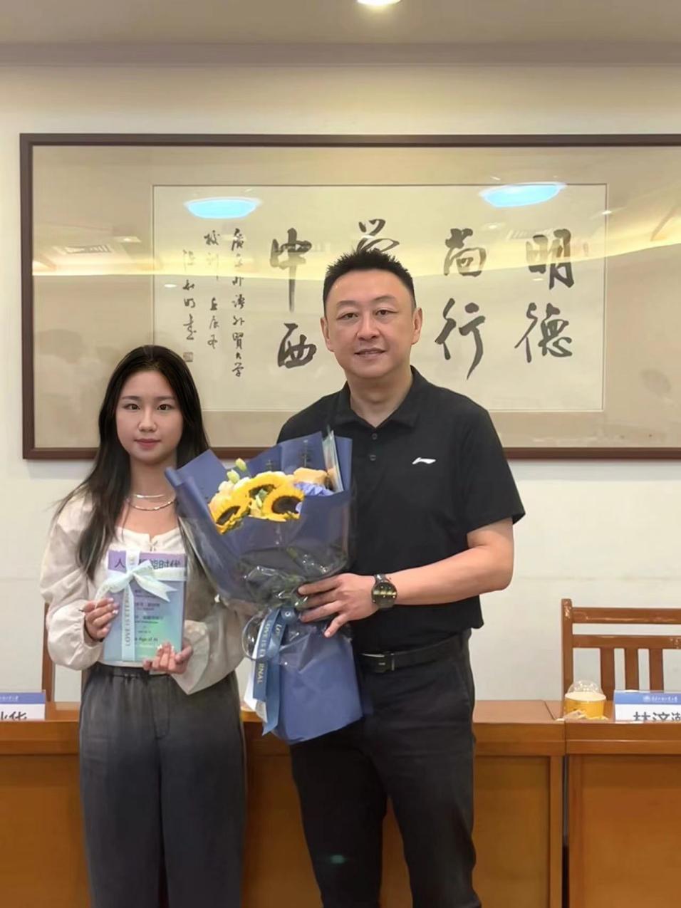 唐锐向毕业生代表赠送毕业礼物