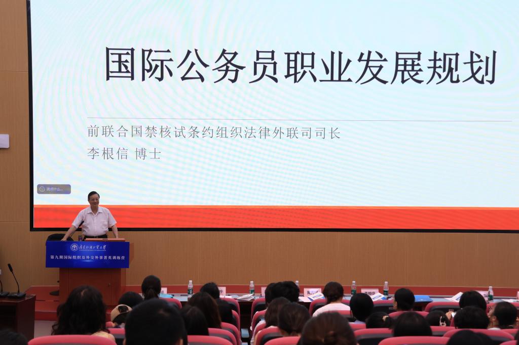 启动仪式结束后,通过线上和线下相结合的方式正式开始训练营培训,活动吸引了暨南大学、华南师范大学、西南财经大学共约200名学生参与。李根信司长为学员们作题为“国际公务员职业生涯规划”的开营第一讲,详细介绍了国际组织在全球化背景下的重要地位与主要作用,希望同学们能志存高远,从多方面、全方位提升综合能力与专业素养,鼓励大家将联合国等国际组织作为自己的未来职业选择并为之奋斗。随后,国际治理创新学院院长赵龙跃聚焦“国际组织与国际治理人才标准”角度为学员们作专题讲座,分享了国际治理人才需要具备的“三大核心价值观”、“六大管理能力”、“八大核心能力”,希望同学们脚踏实地,朝着目标不懈奋斗。7月6日,训练营邀请联合国开发计划署危机局项目分析师谢文龙、新华通讯社巴拿马城分社记者许咏政、联合国开发计划署认证译员彭科明、深圳市外事办公室高级翻译郝齐为全体学员开展线上主题培训。培训气氛热烈,学员们踊跃提问、积极探讨,讲座结束后同学们纷纷表示受益匪浅。