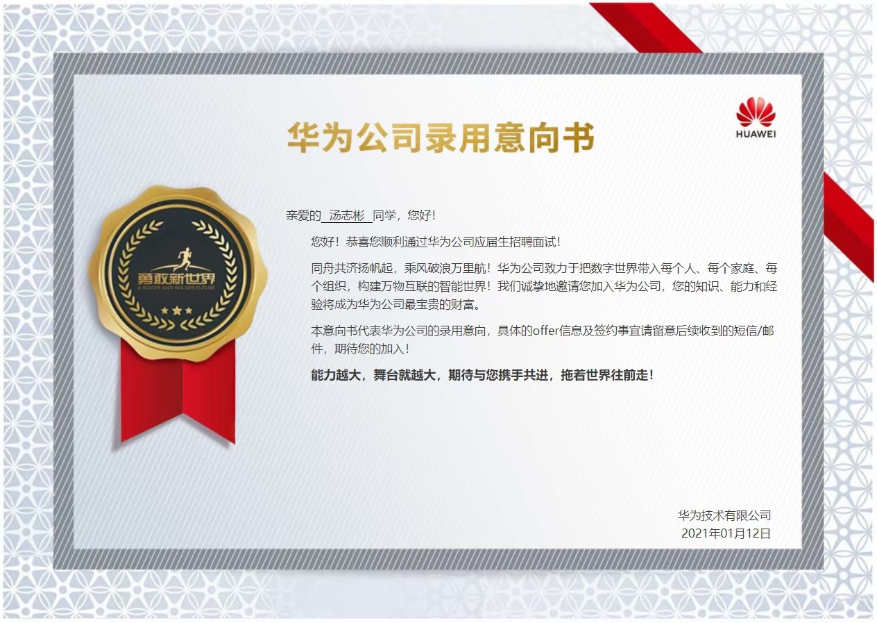 但大家在求职、实习过程中难免会碰上一些顶尖院校并且个人经历也非常丰富、工作上手也很快的人,这时候保持良好的心态就非常重要了。还记得我在参加华为终面时面试官说的一句话:“进了华为,身边都是各个国家来的优秀学子,但只要你不看低自己,保持努力,一定能证明自己的价值。”事实也证明这绝对不是一句甜蜜的鸡汤,在新员工培训中,我身边基本都是顶尖学府毕业的学生,甚至还有中科院来的博士,但认识到差距,只要你付出更多的努力,还是可以弥补差距,况且我们本身也有自己的长处,要学会充分发掘自己的优势。比如,我在大学学习过管理学的课程,在公司价值观的研讨过程中也可以发挥学科优势,结合管理学的理论去讲自己的理解;我打过辩论赛,也可以在辩题的准备过程中多发言多做贡献。最后,我也是获得了“优秀学员”和“最强班委”的称号。