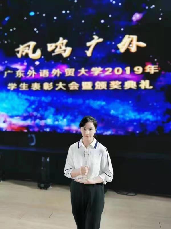 国家级奖项包括:2018年“普译奖”全国大学生英语写作大赛全国二等奖;2019年MODEL APEC大会地区赛一等奖;2019年第八届全国口译大赛广东省三等奖;2019年全国高校创新英语挑战赛全国一等奖;2019年“普译奖”全国大学生英语写作大赛全国一等奖;2020年“普译奖”全国大学生翻译大赛三等奖;2020年第九届全国口译大赛广东省/港澳赛区优秀奖;2021年全国商务英语大赛初赛一等奖等。